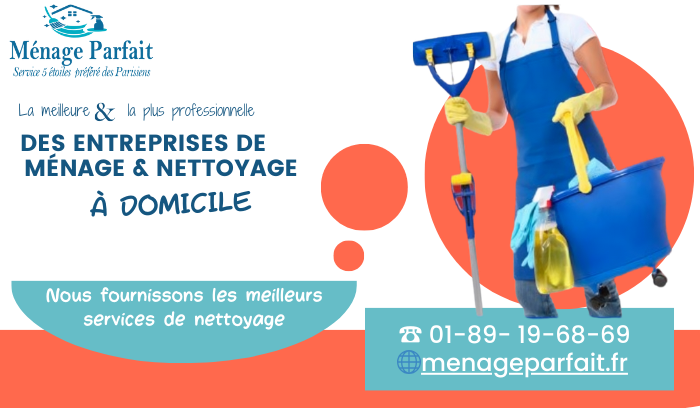 Ménage Parfait Services (tél: 01 89 19 68 69)est une entreprise de nettoyage et d'entretien qui offre une large gamme de services pour répondre aux besoins des particuliers et des professionnels. Nous sommes spécialisés dans le nettoyage régulier ou ponctuel de maisons, appartements, bureaux, commerces et autres espaces de vie et de travail. Notre mission est de fournir des services de ménage de haute qualité tout en offrant à nos clients la tranquillité d'esprit grâce à notre personnel fiable et professionnel.